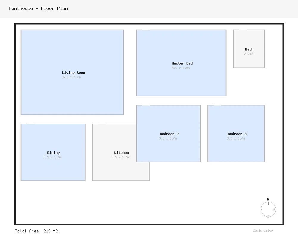 Luxurious penthouse with panoramic views and private terrace. Premium finishes throughout.